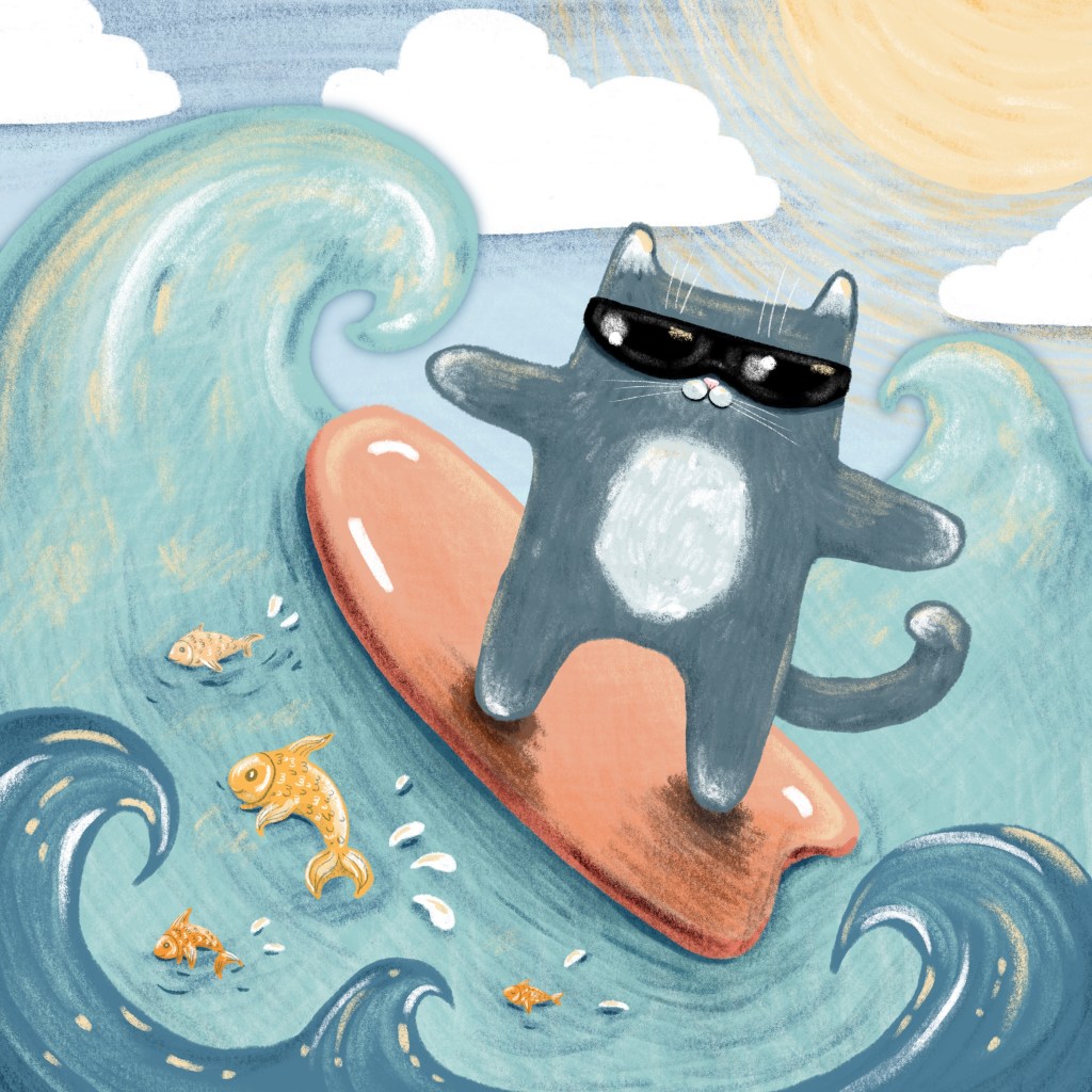 Fluffy Feline Summer is not just about NFTs – it’s also about cute cat and summer themed prints and patterns, now available in a print-on-demand shop. More new designs will be added during the summer, but there’s already lots of cute stuff to choose from!