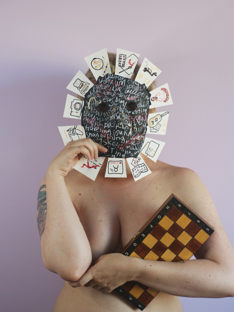 My biggest and most ambitious mixed media project, The Masks of Me, is a deeply personal collection of 35 handmade masks, each revealing an aspect of my personality, experiences, and background. Inspired by my involvement in the NFT community, I used art, crafts, photography, and writing to bring the masks to life.